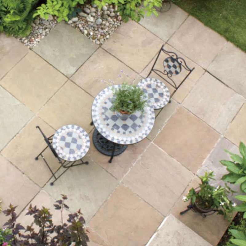 インド産の天然石を使用した「ハーベストブラウン」は、自然な風合いと落ち着いたブラウン系カラーが魅力の舗装材です。