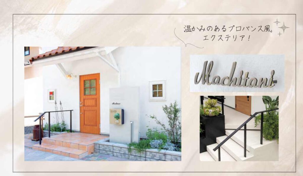白い塗り壁と木目の玄関ドアが映える、温かみのあるプロバンス風エクステリアをご紹介します。