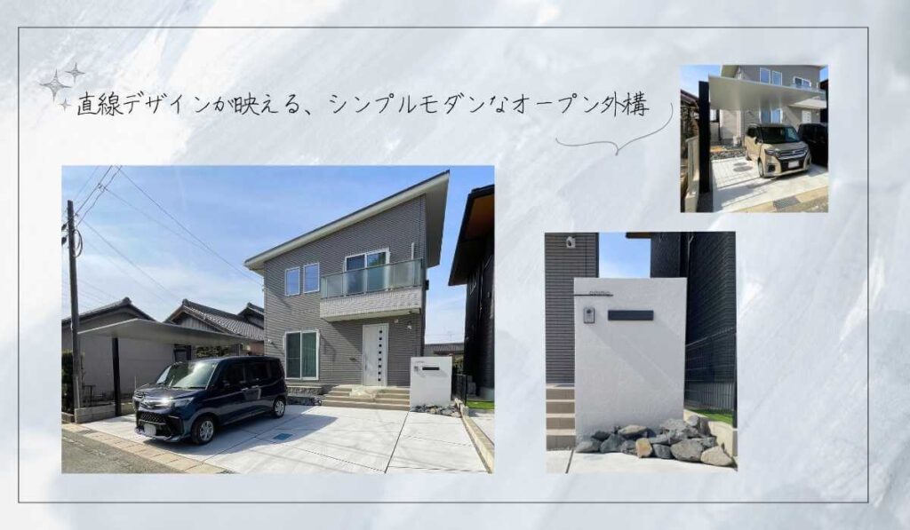 グレーを基調とした建物に合わせた、シンプルモダンなオープン外構をご紹介します。